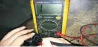 用萬(wàn)用表對(duì)4個(gè)接線進(jìn)行檢測(cè),發(fā)現(xiàn)只有1號(hào)和2號(hào)端子導(dǎo)通,電阻為13Ω左右,其他接頭之間并沒(méi)有導(dǎo)通,因?yàn)橹安](méi)有做過(guò)此類轎車維修,但是憑著經(jīng)驗(yàn)推測(cè)此閥應(yīng)該是電子節(jié)溫器,推測(cè)理由是德國(guó)車系中有多款車使用電子節(jié)溫器(維修手冊(cè)稱為特性曲線式節(jié)溫器),此閥的工作機(jī)理是DME 為特性曲線式節(jié)溫器提供12V車載網(wǎng)絡(luò)供電,DME在接地側(cè)進(jìn)行控制。為進(jìn)一步驗(yàn)證推斷是否正確,只有將此部件拆下。經(jīng)過(guò)接近2h的拆裝后,此部件被拆下。在翻轉(zhuǎn)觀察節(jié)溫器下方的過(guò)程中,在節(jié)溫器旁邊有一個(gè)圓點(diǎn),類似冷卻液溫度傳感器的銅色金屬探頭,推斷3號(hào)和4號(hào)線極有可能是連接著冷卻液溫度傳感器。于是再次測(cè)量3號(hào)與4號(hào)線之間的電阻,電阻擋位從200Ω一直調(diào)整到20kΩ擋,其電阻都顯示為無(wú)窮大,再用蜂鳴擋進(jìn)行測(cè)量驗(yàn)證沒(méi)有聲響,表明此冷卻液溫度傳感器內(nèi)部已經(jīng)斷路,當(dāng)時(shí)室溫為30℃左右,測(cè)量值應(yīng)該為1000Ω左右。如圖2所示。