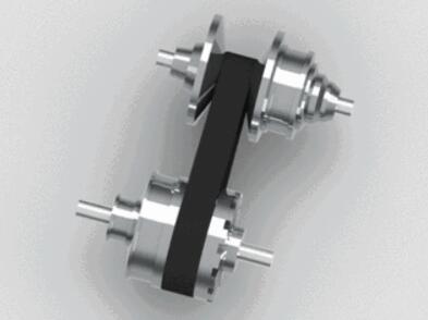 可動(dòng)盤與固定盤都是錐面結(jié)構(gòu),它們的錐面形成V型槽來(lái)與V型金屬傳動(dòng)帶嚙合。發(fā)動(dòng)機(jī)輸出軸輸出的動(dòng)力首先傳遞到CVT的主動(dòng)輪,然后通過(guò)V型傳動(dòng)帶傳遞到從動(dòng)輪,最后經(jīng)減速器、差速器傳遞給車輪來(lái)驅(qū)動(dòng)汽車。