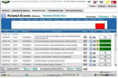 2)連接SDD,與HI-CAN 系統(tǒng)無法溝通,DTC 見截屏。