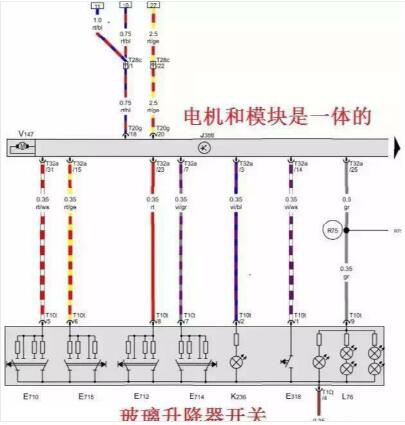 這是玻璃升降電機.電機內(nèi)部是一個模塊.也就是說.開關(guān)的信號會給到電機模塊.(可以說是一個車門模塊集成了).模塊會去控制玻璃升降電機動作.