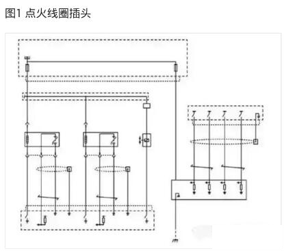 拔下點(diǎn)火線圈的插頭,如圖1 所示。點(diǎn)火線圈控制電路圖如圖2 所示;