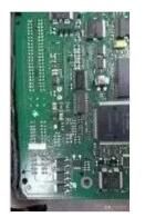準(zhǔn)備用二極管試燈測(cè)試控制單元驅(qū)動(dòng),后來一想,電路圖上也沒有標(biāo)明哪個(gè)是第3 缸,每一根控制線測(cè)試十幾秒啟動(dòng)機(jī)也受不了,即使找到哪根控制線出問題了還得打開發(fā)動(dòng)機(jī)控制單元量線來找驅(qū)動(dòng)管,而發(fā)動(dòng)機(jī)控制單元就在蓄電池旁邊,不如把控制單元分解開啟動(dòng)著車后直接在驅(qū)動(dòng)塊上找,這樣可以節(jié)省很多時(shí)間,發(fā)動(dòng)機(jī)控制單元如圖3 所示。