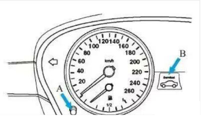 ◆ 按下圖中的按鍵A,保持按壓狀態(tài)約10s,直至顯示屏(圖中B)顯示首個(gè)保養(yǎng)項(xiàng)目;