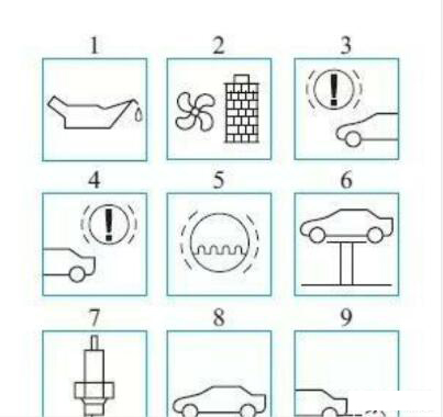 1—發(fā)動(dòng)機(jī)機(jī)油;2—花粉過濾器;3—前輪制動(dòng)襯塊;4—后輪制動(dòng)襯塊;5—制動(dòng)液;6—車輛檢測;7—火花塞;8—車輛檢查;9—廢氣排放檢測