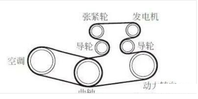 更換發(fā)動(dòng)機(jī)傳動(dòng)皮帶時(shí),要記清發(fā)動(dòng)機(jī)傳動(dòng)皮帶的盤繞路徑,以免安裝時(shí)發(fā)生錯(cuò)誤。傳動(dòng)皮帶的盤繞方法如下: