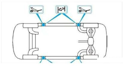 維護(hù)保養(yǎng)操作中使用舉升機(jī)、千斤頂和安全支架舉升或支撐車輛時(shí)要按照下圖所示執(zhí)行操作。