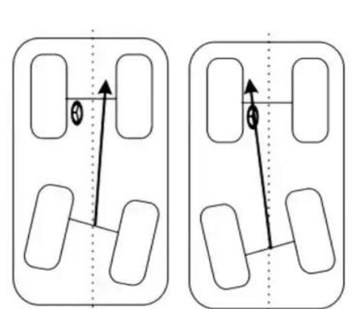 推進(jìn)角是車輛推進(jìn)線與車輛參考中心線(幾何中心線)之間的角度。通過(guò)后輪單側(cè)前束平分點(diǎn)做一直線與后輪中心相交,確定推進(jìn)線,即:汽車后輪總前束的平分線為汽車的推進(jìn)線。推進(jìn)線與車輛幾何中心線之間的夾角就是推進(jìn)角,也被稱為蟹形角。