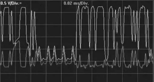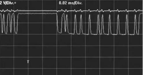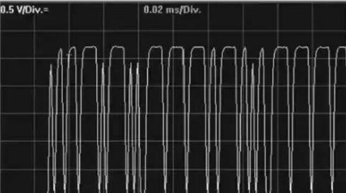 當某個控制模塊CAN H 導(dǎo)線斷路時,會導(dǎo)致該控制模塊無法實現(xiàn)通信,但其他控制模塊的通信還是有的。在其他的控制模塊可能讀到此故障模塊的故障碼。如果多個控制模塊的CAN H 導(dǎo)線出現(xiàn)斷路。那么這些控制模塊的通信功能都會受到影響。CAN H 斷路的總線波形如下圖所示。