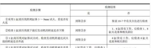 以檢查直列6缸發(fā)動機(jī)的1、6 缸為例,點(diǎn)火系統(tǒng)跳火正常發(fā)動機(jī)不能工作故障檢修步驟與方法見下(表10-6)。