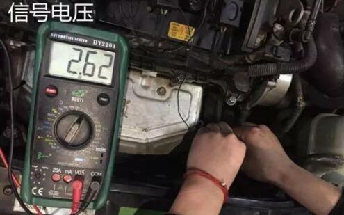 這是被測(cè)得的信號(hào)電壓2.62v,初看上去沒有任何的為題,符合2.06v~2.96V的調(diào)節(jié)范圍。(2.51-0.45=2.06V 2.51+0.45=2.96)信號(hào)電壓直接反應(yīng)了混合氣的濃度,現(xiàn)在信號(hào)電壓是比2.51V高出2.62-2.51=0.11v。通過(guò)加油門和收油門這個(gè)電壓沒有任何的變化。說(shuō)明信號(hào)電壓的調(diào)節(jié)能力已經(jīng)失去了,混合氣一直在加濃。