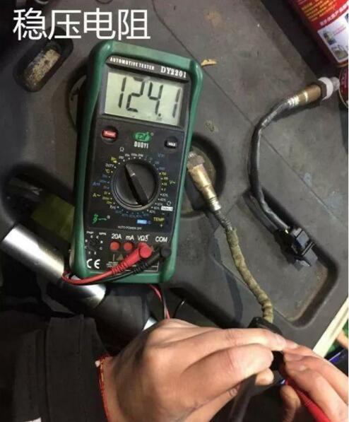 為了查明是什么原因?qū)е卵鮽鞲衅魇チ俗兓匦?,我將氧傳感器拆下?lái)對(duì)穩(wěn)壓電阻進(jìn)行了測(cè)試,前氧的穩(wěn)壓電阻一度達(dá)到了124歐姆.