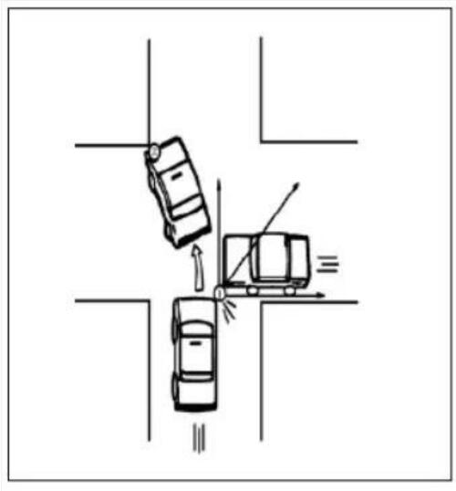 實(shí)際碰撞中,兩車的相撞會產(chǎn)生不同損傷類型的組合(圖1)。 車身維修人員在損傷評估之前,應(yīng)盡可能多地通過車主了解事故 實(shí)際發(fā)生的真實(shí)過程。 圖1 車身發(fā)生多次碰撞圖