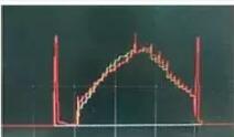 進一步測量CA天線的波形,發(fā)現(xiàn)該車7根CA天線波形一致,但是比正常車輛天線波形多了一個山峰形狀波形,如圖3、圖4所示。