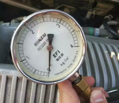 5.連接好汽油壓力表后,準(zhǔn)備上路進(jìn)行路試,但在車間移動(dòng)的過(guò)程中偶然發(fā)現(xiàn)故障再現(xiàn),此時(shí)燃油壓力為0(圖1)。