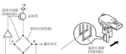 在發(fā)動(dòng)機(jī)的空氣濾清器和節(jié)氣門體之間放置一發(fā)熱體和一個(gè)溫度傳感器,空氣流經(jīng)發(fā)熱體時(shí)會(huì)帶走熱量,使得發(fā)熱體變冷,發(fā)熱體上流過的空氣量越多,被帶走的熱量也越多,溫度傳感器感應(yīng)到溫度的變化并將這一變化送給發(fā)動(dòng)機(jī)控制單元,發(fā)動(dòng)機(jī)控制單元根據(jù)溫度變化計(jì)算出空氣流量。熱線式空氣流量計(jì)就是根據(jù)這一原理制成的。