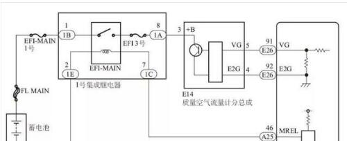 豐田凱美瑞1ZR-FE、2ZR-FE、5AR-FE發(fā)動(dòng)機(jī)采用了熱線式空氣流量計(jì),5AR-FE發(fā)動(dòng)機(jī)空氣流量計(jì)電路連接如下圖所示。