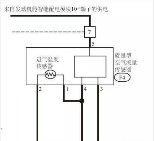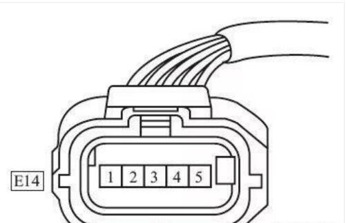 關(guān)閉點(diǎn)火開關(guān),斷開空氣流量傳感器插頭,傳感器插頭如下圖所示。打開點(diǎn)火開關(guān),使用萬用表直流電壓擋測(cè)量傳感器插頭E14的3#端子和搭鐵之間的電壓應(yīng)為11~14V。否則檢測(cè)傳感器3#端子與1號(hào)繼電器之間的線束。