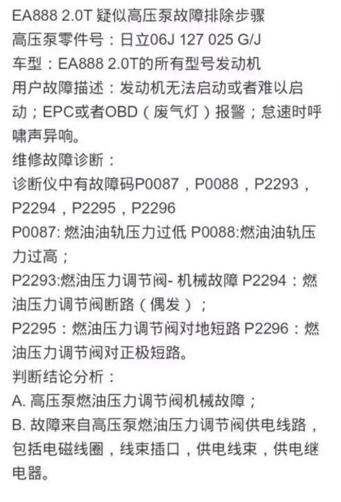 汽修案例:EA888發(fā)動機故障