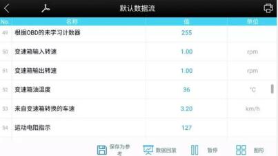 例 數(shù)據(jù)流50.51,變速箱輸入和輸出轉速,如果兩者轉速比標準值相差太大,那么變速箱處于打滑狀態(tài)。52變速箱油溫度,如果顯示負溫度那么應考慮傳感器本身故障或者線路故障,當變速箱溫度顯示過高時應考慮變速箱散熱系統(tǒng)故障。