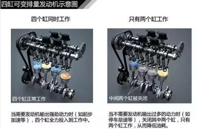 通常為了獲得大的動力,需要把發(fā)動機的排量增大,如8缸、12缸發(fā)動機動力就非常強勁。但付出的代價就是油耗增加。尤其是在怠速等工況不需要大動力輸出時,燃油就白白浪費掉了,而可變排量就可以很好地解決矛盾。