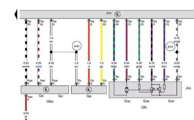 查閱電路圖(圖2),測量進氣溫度傳感器G42線路,結果如下:T4ah/1電壓為0V,對搭鐵電阻為0.60Ω;T4ah/2電壓為5V;T4ah/ 3電壓為5V;T4ah/ 4電壓為1.32V。