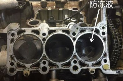我翻看PCV閥的正面也沒(méi)有看到橡膠圈有任何的密封不嚴(yán)的情況,那么消失的防凍液到底去了哪里呢?那就是最槽糕的結(jié)果,發(fā)動(dòng)機(jī)缸蓋的缸墊被擊穿了~