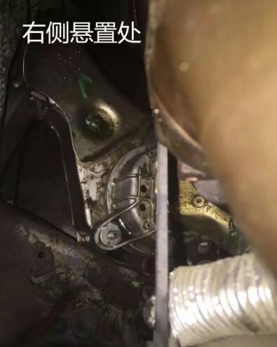 由于氣門室長期泄露機(jī)油,車主也沒有及時(shí)的進(jìn)行維護(hù),導(dǎo)致流到了發(fā)動機(jī)右側(cè)的懸置上面。