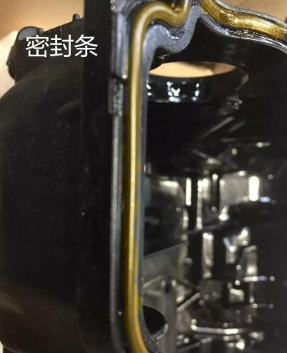 被涂黃的就是氣門室罩蓋的密封條,采用聚氨酯材質(zhì),由于氣門室的獨(dú)特工作環(huán)境,高溫、高壓。它會變的很脆很硬,久而久之就會失去密封性,機(jī)油就是從這里泄露出來的。