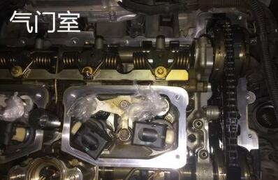 拆下氣門室罩蓋,氣門室就變的一覽無余了,需要把殘留的油泥全部清除掉才行。(機(jī)油的品質(zhì)不錯,我都沒怎么清洗,可見氣門室的干凈程度。)