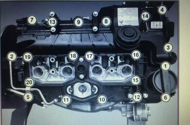 這是一張氣門罩蓋的螺栓預(yù)緊順序圖,氣門室螺栓有嚴(yán)格的順序要求。不然,氣門室罩蓋受到的應(yīng)力不一樣,馬上就又漏油了。(數(shù)據(jù)來源于ISTA )