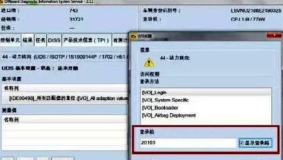在ODI S 中,進(jìn)入“44- 動(dòng)力轉(zhuǎn)向”,進(jìn)行“控制單元自診斷”,選擇“訪問(wèn)權(quán)限”,在彈出窗口輸入登錄碼:20103,點(diǎn)擊“進(jìn)行”( 圖1)。