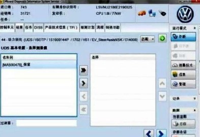 2. 再次進(jìn)入“44- 動(dòng)力轉(zhuǎn)向”,進(jìn)行“控制單元自診斷”,選擇“基本設(shè)置”,將“所有匹配值的復(fù)位”選入右側(cè)選擇框,點(diǎn)擊進(jìn)入下一步( 圖2)。