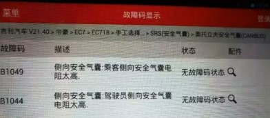 嘗試清除故障碼,發(fā)現(xiàn)無法清除,看來是實際存在故障,該車進廠時氣囊燈是正常的,并沒有點亮,就是拆裝了一下天窗,由于側氣簾的線束是在車頂上布置的,所以拆裝天窗需要拔掉兩個側氣簾的插頭,可是并沒有拆過側氣囊及相關線束,但解碼器沒有讀到側氣簾的相關故障碼,卻讀到側氣囊的故障碼。因為以前遇到好多431解碼器報錯故障的例子,所以心里在想難道又是解碼器報錯了?為了驗證解碼器所報故障碼是否真實,換了個新款解碼器,并把右側氣簾的插頭也拔了,重新讀取故障碼,