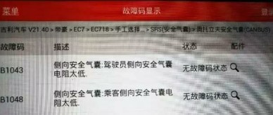 此時的故障碼由起初的電阻太高改變成電阻太低,說明電腦板和線束沒問題,故障原因是在氣囊插頭至氣囊本身這一段,而兩個氣囊一般無故同時出現(xiàn)故障的幾率很小,且之前故障碼能自動消除,所以把懷疑重點放在插頭上,嘗試著把氣囊的線束插頭里塞幾根細銅絲并連接好插頭,清除并重新讀取故障碼,發(fā)現(xiàn)故障已可以被清除,解碼器顯示無故障碼,儀表氣囊警告燈在自檢結束后熄滅。