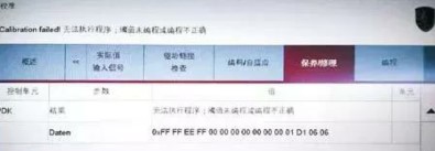 但故障碼均為偶發(fā)故障,清除后再次進行路試。當路試進行大約15km 后故障再次出現(xiàn),返廠進行檢測,故障碼沒有變化,初步懷疑是變速器的散熱不好造成溫度過高。檢查發(fā)動機的散熱和變速器油水散熱器都在正常范圍內,嘗試更換變速器油后試車,故障沒有排除。根據(jù)電路圖檢查變速器溫度傳感器的線路均正常,查閱相關維修資料得知,此款PDK變速器的油溫傳感器故障率比較高,更換后按照原廠手冊要求對PDK 控制單元進行編碼、校準工作。但是校準卻無法成功進行,并報如圖2 所示故障。