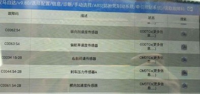 6.出現(xiàn)以下,制動(dòng)液壓力傳,橫向加速度,偏航率速度,縱向加速度傳感器,依次點(diǎn)擊進(jìn)入按操作提示點(diǎn)擊復(fù)位,就可以操作成功