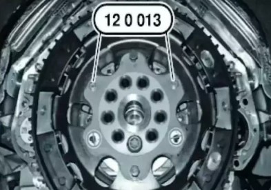 (2)必要時將專用工具 12 0001(裝配輔助工具)用專用工具 12 0 002(螺栓)固定在電機(jī)上,如圖2 所示。