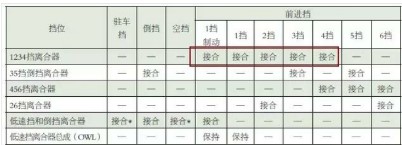 接著查閱各執(zhí)行元件的工作邏輯表,1~4擋的正常工作的主要離合器執(zhí)行元件是(1234擋離合器)(如表2紅色方框部分)。