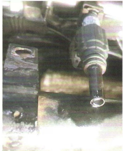 用X431消除現(xiàn)有故障碼,結(jié)果無法清除,并非偶發(fā)性故障。根據(jù)策略性診斷思路,針對發(fā)動機缺缸,先從點火系檢查,結(jié)論是點火模塊和火花塞工作正常;但檢查燃油系統(tǒng)時發(fā)現(xiàn)了問題,確定2缸、4缸噴油器存在關(guān)閉不嚴導(dǎo)致漏油(如圖2所示),征得客戶同意更換了全部噴油器。