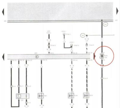 有了對故障的基本分析,接下來就容易多了。先對保險絲S229的線路進行排查,如圖4所示,發(fā)現(xiàn)有保險絲損壞,隨即更換一個新的。