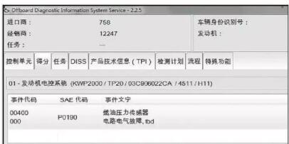 故障小結:由于高壓燃油壓力傳感器G247信號線斷路,導致燃油壓力傳感器G247無法把正常的燃油壓力信號傳遞給發(fā)動機控制單元,發(fā)動機控制單元處于應急狀態(tài),將發(fā)動機最高轉速限速到3000r/min,致使車輛加速不良。