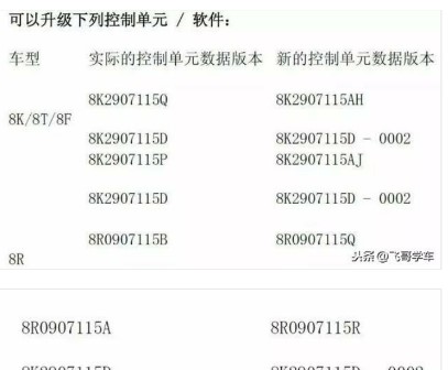 安裝下述措施套件前請先檢查所需的發(fā)動機(jī)控制單元軟件是否可用(見下面的軟件表格)。