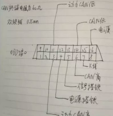 該車問題應(yīng)該是出現(xiàn)在CAN通訊線路, 檢測CAN通訊主線的終端電阻。上課聽老師講過這個車可以從診斷接口的6號和14號腳入手。找出上課時做的筆記OBD診斷接口圖 。如下圖: