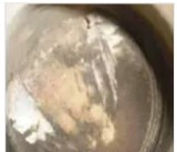 通過檢查和分析,重點檢查了平時出現(xiàn)故障率最高的兩項:增壓器空氣再循環(huán)閥和催化轉(zhuǎn)化器,在檢查中發(fā)現(xiàn)三元催化器有堵塞現(xiàn)象(見圖)。