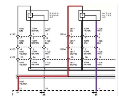 根據(jù)電路圖(如圖3所示)分析,點(diǎn)火開關(guān)打開ON擋,X114的1號(hào)腳與3號(hào)腳電壓為5V。