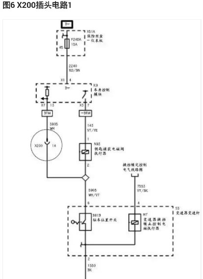 客戶再次進(jìn)站維修,技師按電路圖(如圖6、圖7所示),測量并打磨發(fā)動(dòng)機(jī)艙所有接地點(diǎn),并且更換蓄電池負(fù)極線與保險(xiǎn)絲盒的電源線,檢查駕駛艙X200插頭,發(fā)現(xiàn)內(nèi)部有氧化現(xiàn)象(如圖8所示),檢修并清潔X200,交車給客戶。