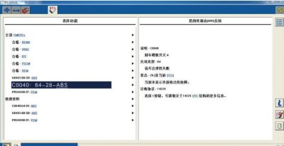 接車后首先進(jìn)行故障確認(rèn),啟動車輛試車一切正常,故障現(xiàn)象未重現(xiàn)。由于此車之前留店時(shí)間短,檢查倉促,與客戶商量多一些時(shí)間留店進(jìn)行詳細(xì)檢查,徹底排除故障。由于沒有故障現(xiàn)象,也沒有故障代碼,只能依據(jù)問診情況進(jìn)行大量路試,在顛簸路面、彎道路面、低速、高速等都進(jìn)行了路試,終于出現(xiàn)了客戶描述的故障現(xiàn)象,當(dāng)時(shí)是經(jīng)歷了一次比較大的顛簸后,儀表盤上的坡道輔助燈點(diǎn)亮,同時(shí)定速巡航失效。故障再現(xiàn)后,使用診斷儀IDS進(jìn)行檢測,PCM模塊故障碼如圖1所示,ABS模塊故障碼如圖2所示。