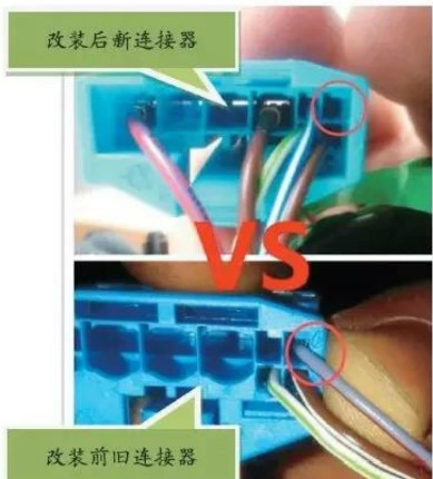 這里留個推理題,為何改裝前的舊連接器有灰紅色的線,而改裝后新連接器沒有這個線,如圖2所示,答案本文最后揭曉。