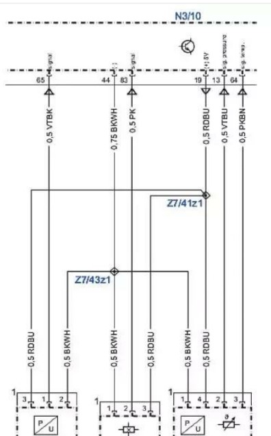 分析電路圖可知,每個電機(jī)有4個針腳,1號和2號連接電機(jī),3號和4號連接霍爾位置傳感器,轉(zhuǎn)向柱的位置由集成在轉(zhuǎn)向柱前后/上下調(diào)節(jié)電機(jī)中的霍爾傳感器確定,轉(zhuǎn)向柱的標(biāo)準(zhǔn)化對于限制調(diào)節(jié)范圍至關(guān)重要,為對轉(zhuǎn)向柱進(jìn)行標(biāo)準(zhǔn)化,應(yīng)達(dá)到轉(zhuǎn)向柱調(diào)節(jié)的各極限位置,并將霍爾傳感器信號的計數(shù)器讀數(shù)存儲為標(biāo)準(zhǔn)化位置。