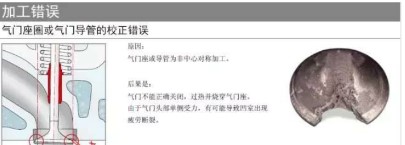 氣門座圈表面粗糙,加工精度不合格,座圈的過盈量選配不當造成松曠,選材不當遇熱后變形過大,或氣門座的鑲配工藝不合要求。處理方法:按照裝配工藝要求重新鑲配氣門座,上端面與體平面齊平,高出部分要修平。